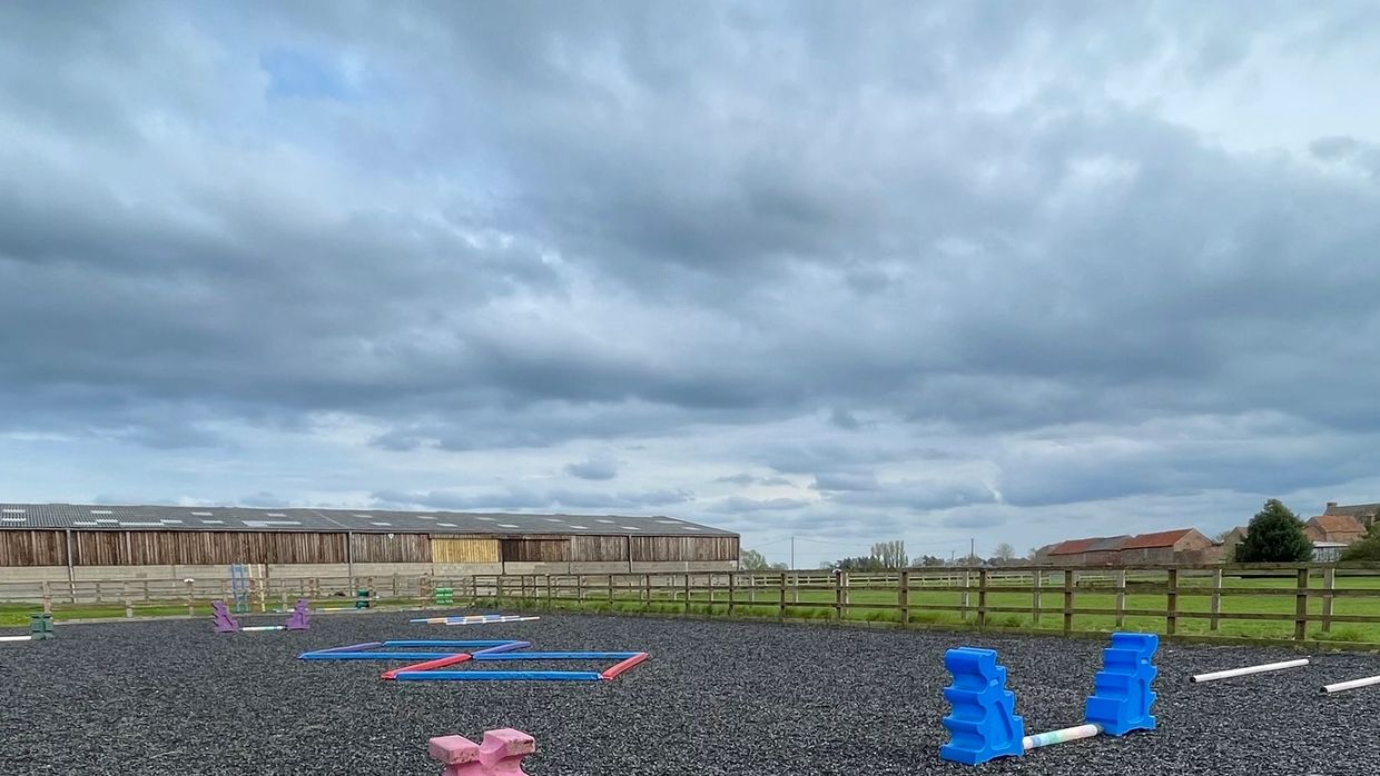 20x40m Charles Britton arena, fully fenced and with a sand and rubber surface.